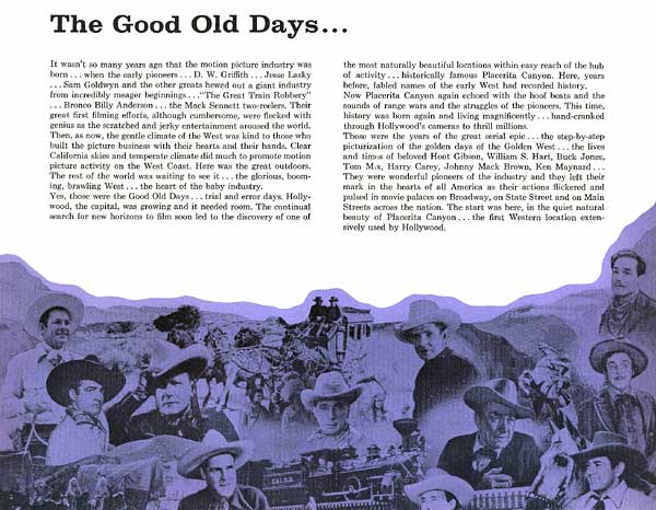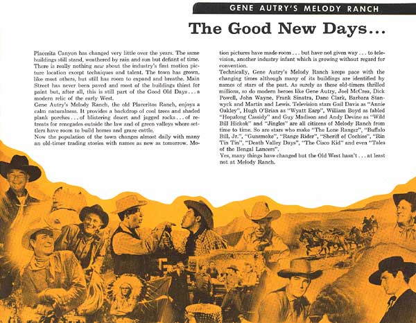 Being a good businessman, Gene promoted Melody Ranch's versatility as a motion picture and television location. Presented here is the original brochure for the ranch, circa 1955. Click on each image to enlarge it.