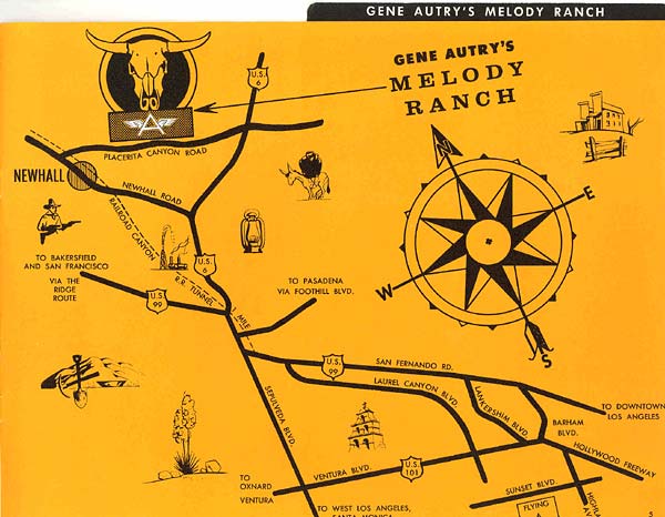 Being a good businessman, Gene promoted Melody Ranch's versatility as a motion picture and television location. Presented here is the original brochure for the ranch, circa 1955. Click on each image to enlarge it.
