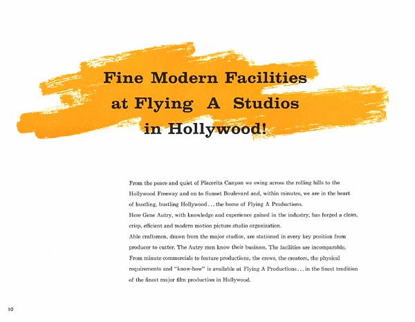 Being a good businessman, Gene promoted Melody Ranch's versatility as a motion picture and television location. Presented here is the original brochure for the ranch, circa 1955. Click on each image to enlarge it.