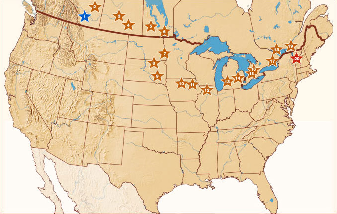 The Blue Star indicates the starting point of the tour, the Red Star indicates the end of the tour.