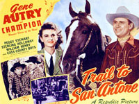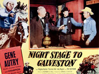 Many of Gene Autry's musical Westerns feature Texas in the story or in song, and this Gene Autry Double Feature highlights the Lone Star State. Trail to San Antone includes the Cass County Boys, a Texas trio who sang with Gene Autry in his post-war films, Melody Ranch radio shows, The Gene Autry Show television series, and personal appearance tours. Night Stage to Galveston features Gene Autry and Pat Buttram as former Texas Rangers along with three terrific songs about Texas.